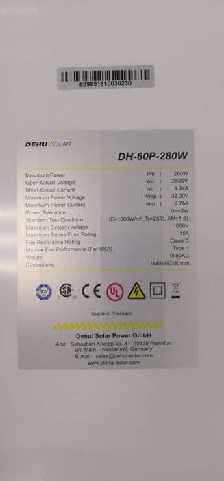 Dehui Solar 280watt Polycrystalline Solar Modules - New with warranty