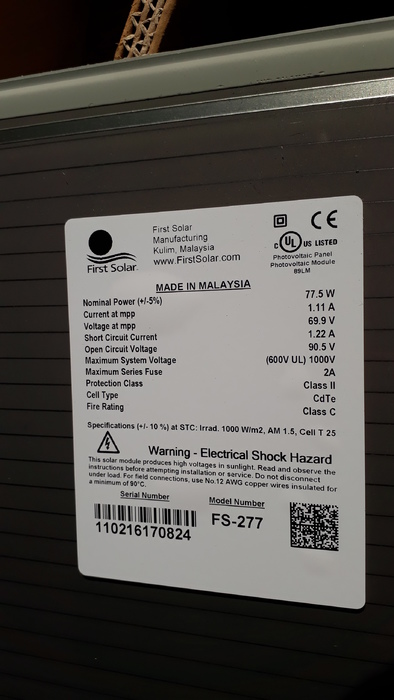 First Solar FS 277 / First Solar FS-277 / First Solar FS277