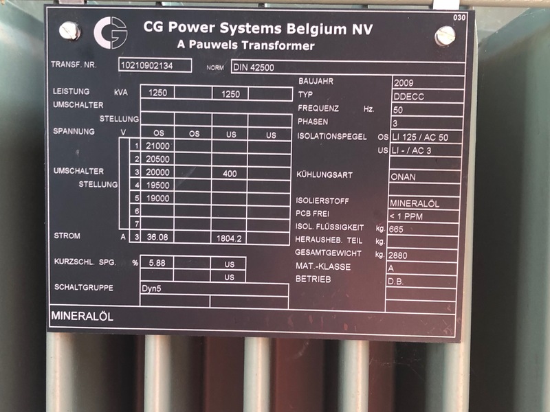 Accessoires / Pauwels - 1250 kVA, 20/0,4 kV