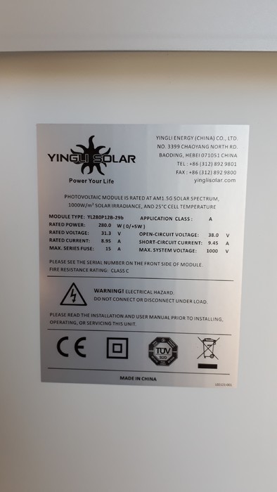 Zonnepanelen / Poly / Yingli - YGE60 YL280P12B-29b