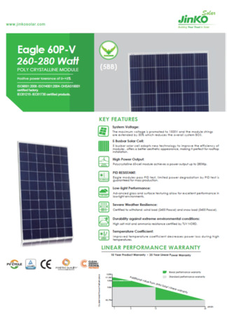 Type Jinko Solar Eagle 60P-V 280W 5BB