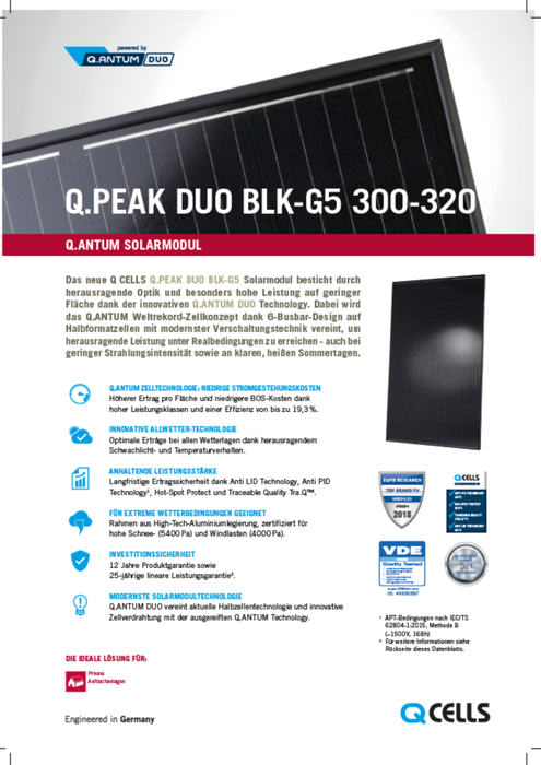 Zonnepanelen / Mono / Hanwha Q-Cells - Q.PEAK BLK-G5 315W