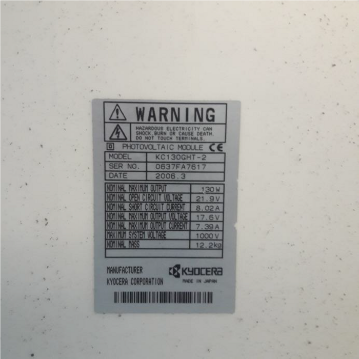 De Kyocera KC130GHT-2 is een polykristallijne zonnepaneel met 130Wp.