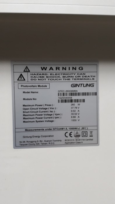 De Gintung GTEC-260G6M6A is een polykristallijne zonnepaneel met 260Wp