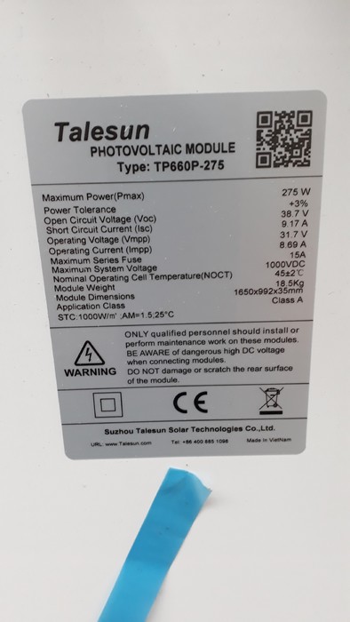 The solar panels Talesun TP660P-275 are polycristalline panels with 275Wp.