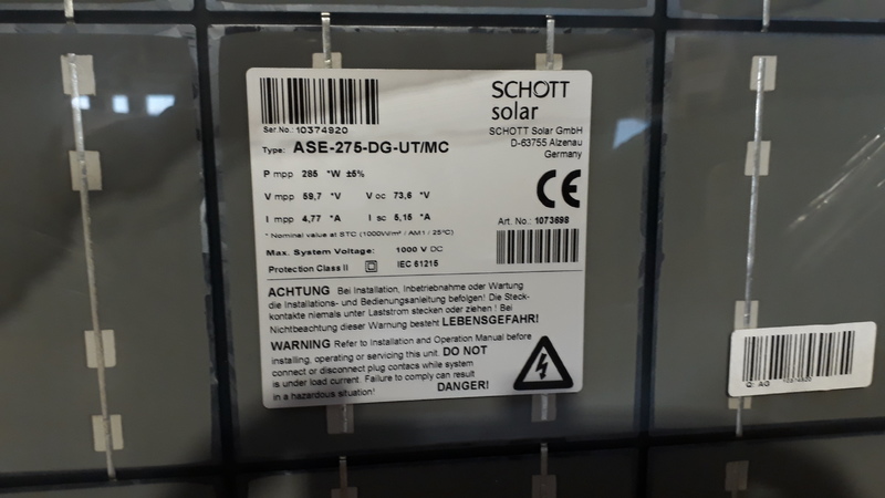 De Schott ASE-275-DG-UT/MC is een frameloze polykristallijne zonnemodule met 285Wp.