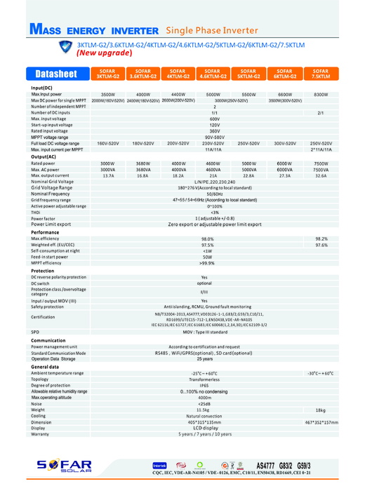 Omvormers / String / SOFAR SOLAR INVE ... - Single phase and ...