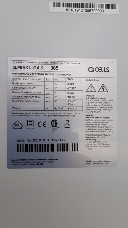 Hanwha Q.Cells Q.Peak L-G4.5 365Wp / Hanwha Q.Cells Q.Peak L G 4.5 365Wp