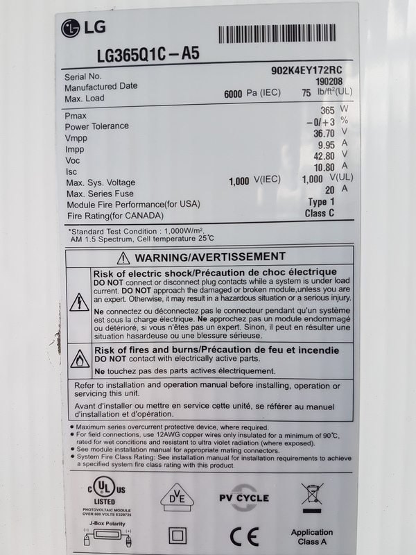 LG Electronics LG365Q1C-A5-AWA NeON R 365Wp  / LG Electronics LG 365 Q1C-A5 AWA NeON R / LG Electronics LG370 Q1C-A5-AWA NeON R