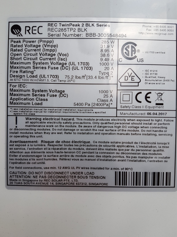 REC Solar TwinPeak 2 REC285TP2 285Wp zwart frame / REC Solar TwinPeak 2 REC 285 TP2 285Wp zwart frame