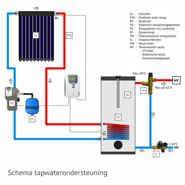 Type 160L zonneboiler (18HP) set met tapwaterondersteuning