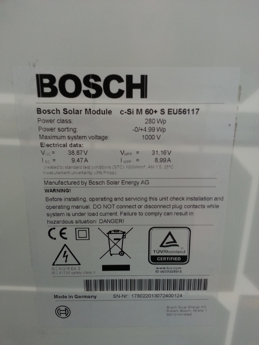 Type Bosch Solar Module c- Si M60+ S 280 EU56117