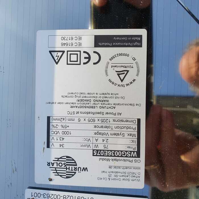 Nominaal vermogen 75 Wp