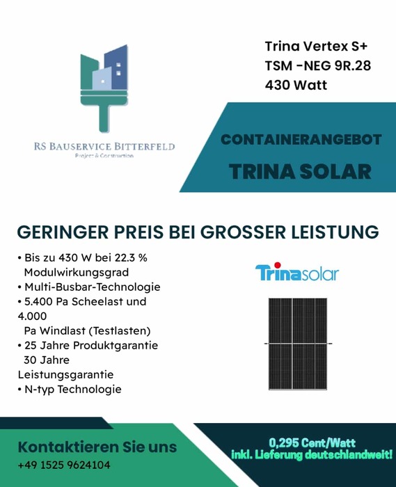 De PV-modules zijn restanten. De verkoop aan ondernemers vindt plaats onder uitsluiting van enige aansprakelijkheid voor materiële gebreken. Bij verkoop aan consumenten vervallen de wettelijke garantieclaims één jaar na overhandiging van het artikel. De aansprakelijkheid voor schade als gevolg van letsel aan leven, ledematen of gezondheid, evenals voor andere schade die is gebaseerd op grove nalatigheid of opzettelijk plichtsverzuim, blijft onaangetast.
