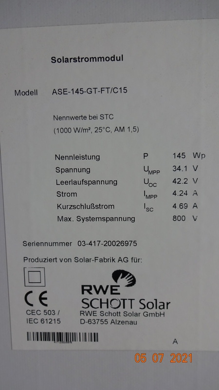 De PV-modules zijn restanten. De PV-modules worden verkocht zonder enige garantie of waarborg. Indien er nog restgaranties zijn, kunnen deze eventueel door de koper worden ingeroepen (mits de fabrikant niet insolvent is). Wij wijzen er uitdrukkelijk op dat wij als verkoper geen aanspraak op garantie of garantie kunnen geven. Door uw bindende aankoop te doen, gaat u hiermee akkoord!
