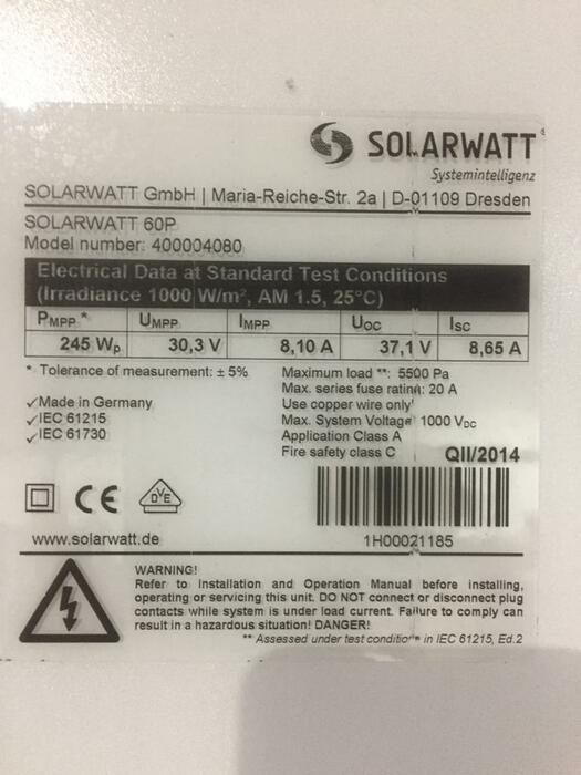 De Solarwatt 60P is een polykristallijne zonnemodule met 245Wp