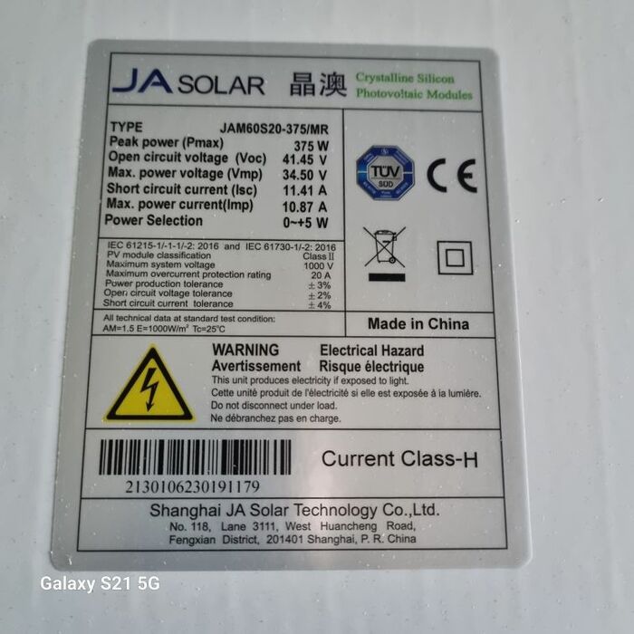 De Ja Solar JAM60S20-375/MR is een monokristallijn zonnepaneel met 375Wp.