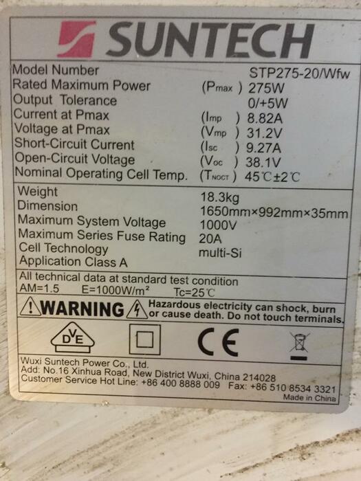 De Suntech STP275-20/ Wfw is een polykristallijne zonnemodule met 275Wp.