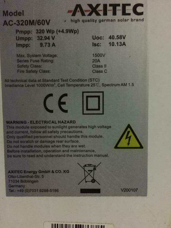 De Axitec AC-320M/60V is een polykristallijne zonnemodule met 320Wp