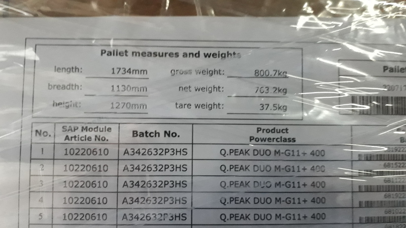 • Maß Palette: ca. 1.75x1.15x1.30m mit ca. 800kg