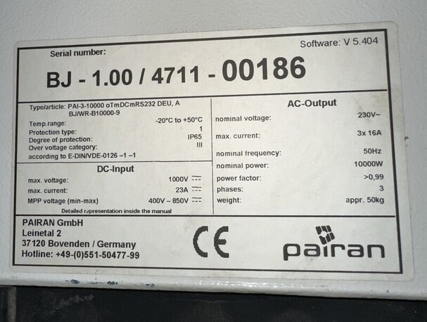 Der PAIRAN PAI-2-10000 ist ein Stringwechselrichter mit 10 kW Leistung.