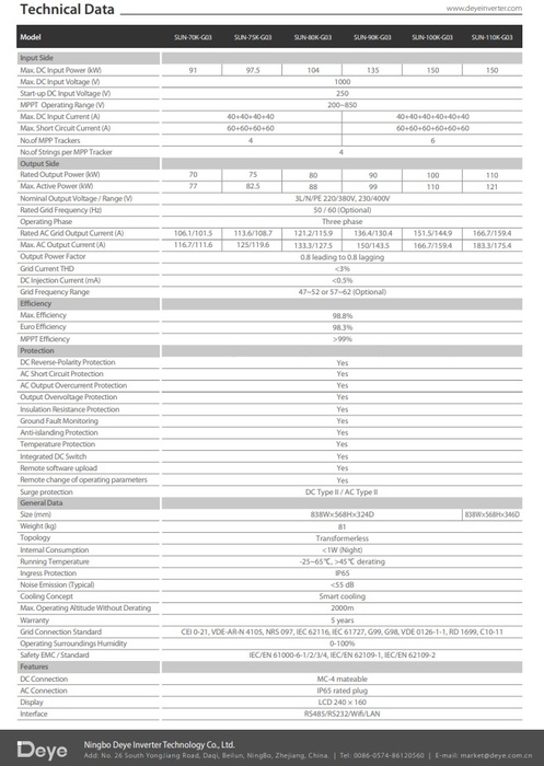 Omvormers / String / Deye 100 kW - 3 phasiger Strin ...