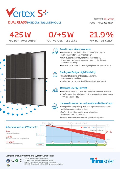 Trina Solar 425Wp Vertex S+ Glas-Glas