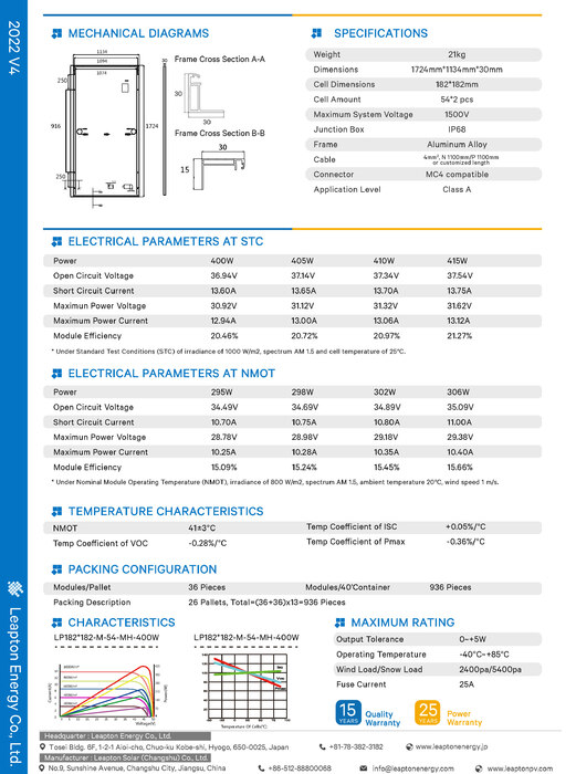 Zonnepanelen / Mono / Leapton - LP182*182-M-54-M ...