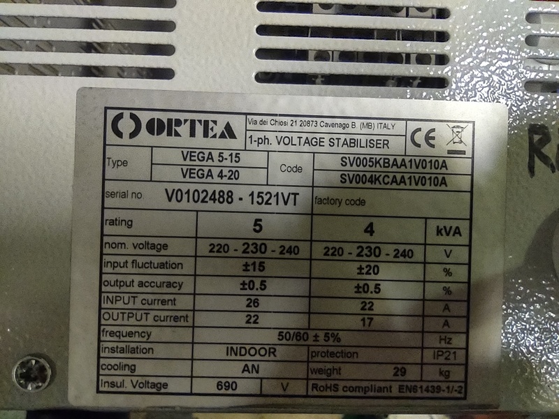 single phase voltage stabiliser; input 230Vac +/. 15% output is stabilized with tolerance +/-0,5%