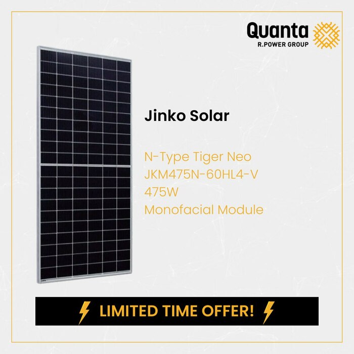 The 475W Jinko Solar Tiger NEO 60HL4-(V) photovoltaic mono-facial module is the latest offering from Jinko Solar, the world's leading manufacturer of photovoltaic panels.