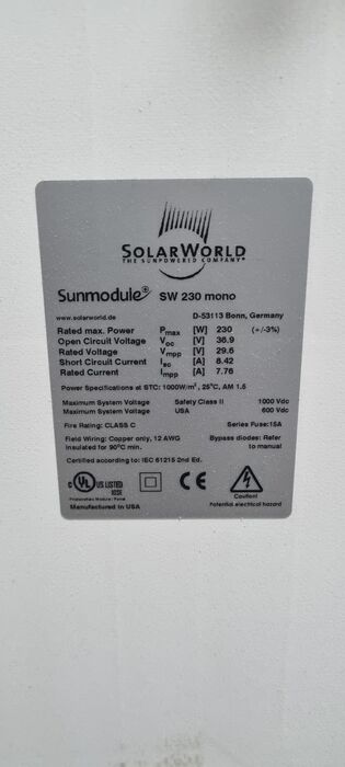 Zonnepanelen / Mono / Solarworld - SW 230 Mono