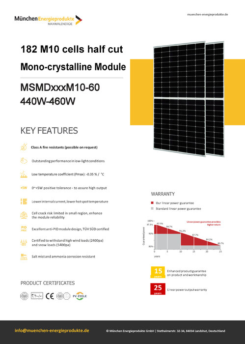 München Energieprodukte MSMD455M6-72 455 W, Black Frame, 21 % Efficiency IN STOCK!!!