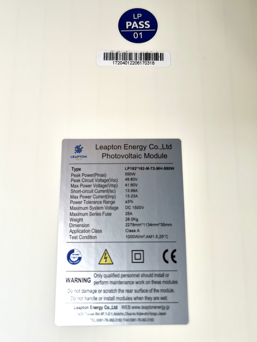 NEW ARRIVAL! - Leapton LP182*182-M-72-MH 550 W - FULL BLACK – Tier1, 21.28% Efficiency