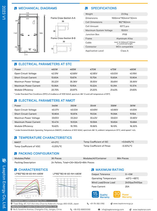 Leapton LP182*182-M-60-NH 480 W - FULL BLACK - NEW MODEL (TOPCON) N-TYPE - 21.65% Efficiency