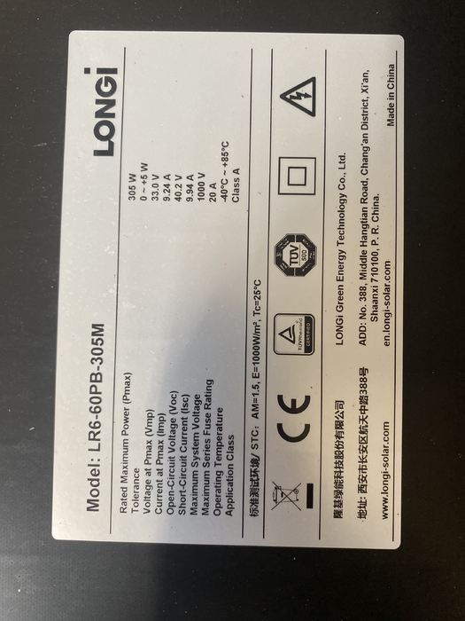 LONGI Solar - LR6-60 BP 305 M