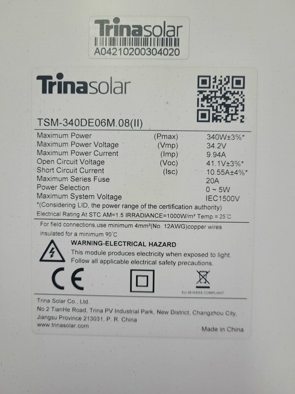 Type Trina HoneyM TSM-340DE06M.08(II) - 340 Wp (BFR)
