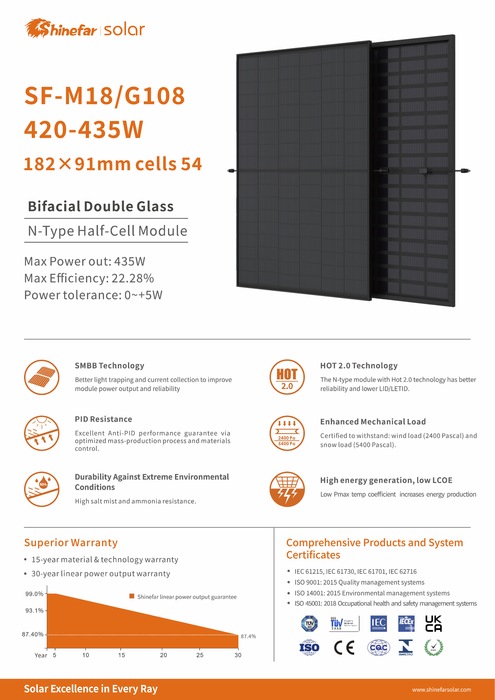 Type Sommerangebot! Shinefar Solar Solarmodul 420W PV-Modul N-Type TOPCon Full Black Bifacial Double Glass