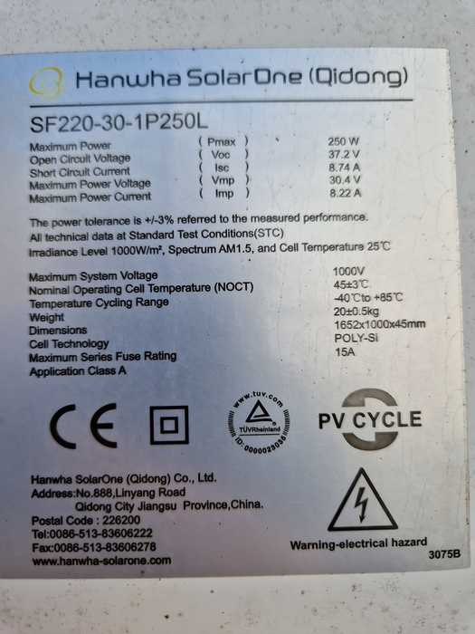 Hanwha SolarOne - SF 220-30-1P-250 ...