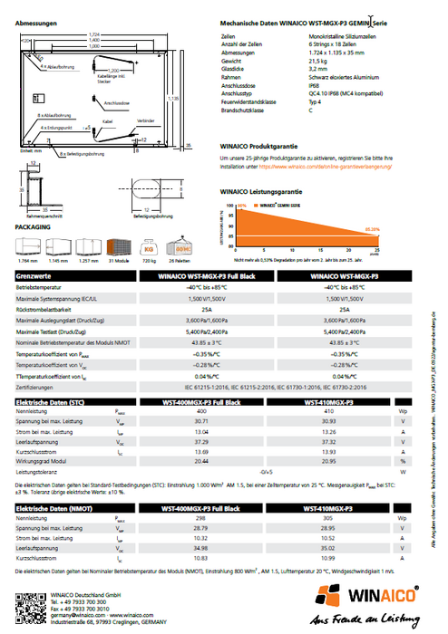 WST-MGX-P3 Gemini Serie 400w Solarmodul A-Ware
