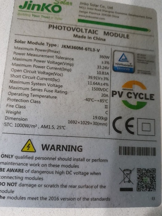 Das Jinko Solar JKM360M-6TL3-V ist ein monokristallines Solarmodul mit 360Wp.