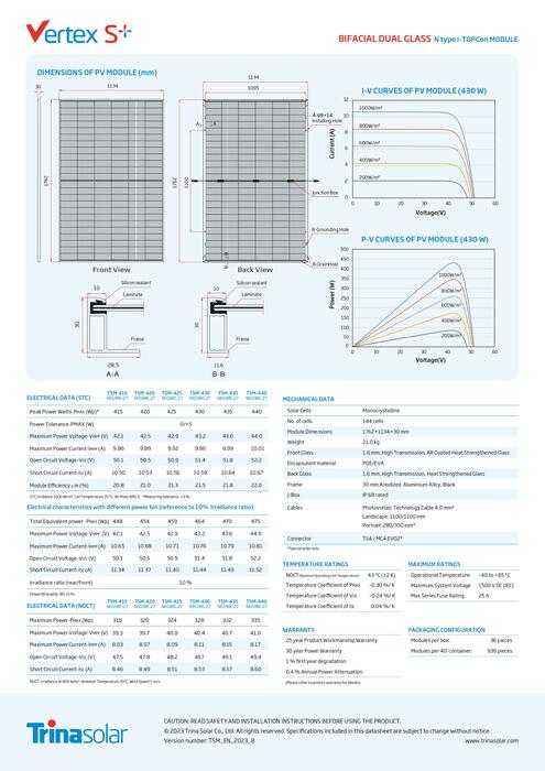 Trina Solar 420W TSM-NEG9RC.27 N-type Bifacial Double Glass Black ...