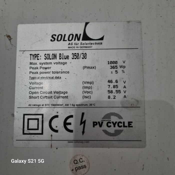 De PV-modules zijn gebruikte goederen. De PV-modules worden verkocht zonder enige garantie of waarborg. Indien er nog restgaranties zijn, kunnen deze eventueel door de koper worden ingeroepen (mits de fabrikant niet insolvent is). Wij wijzen u er uitdrukkelijk op dat wij als verkoper geen aanspraak op garantie of garantie kunnen geven.