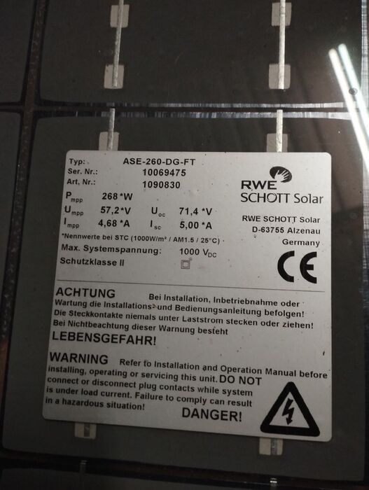 De Schott ASE-260-DG-FT is een polykristallijne zonnemodule met 268Wp