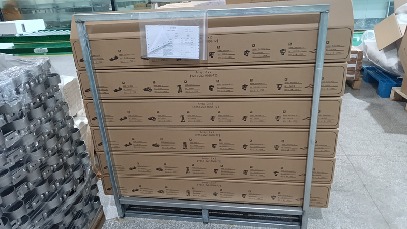 Der Montage-Set für 4 Stück Solar Module verpackt in einem Paket und ist leicht und für den Transport optimiert.