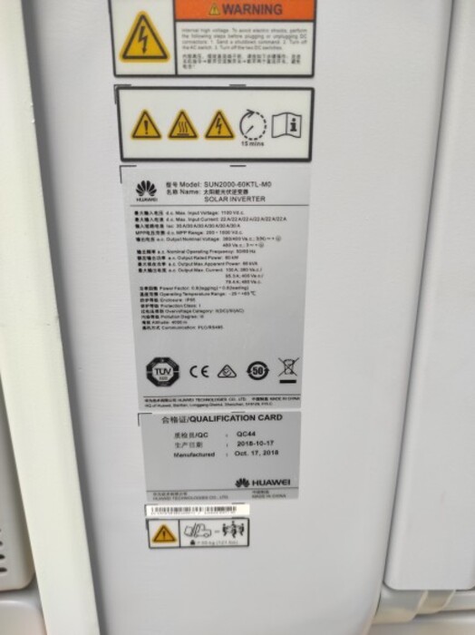 Verkaufe gebrauchte Wechselrichters Huawei SUN 2000-60KTL-M0 funktioniert problemlos. Ich habe insgesamt 9 Stk von dieses Modell, sie sind 5-6 jahre alt.