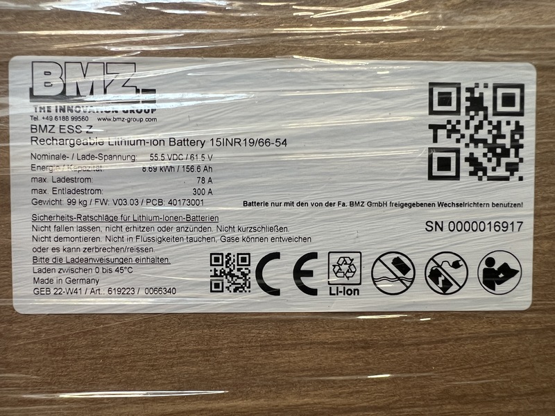 I am offering for sale a high-quality lithium-ion battery from the German manufacturer BMZ. The battery was purchased in October 2022 and has not yet been unpacked or used. It is therefore in new condition. The battery is suitable for use
