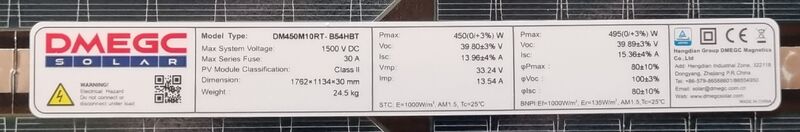 Das DMEGC DM450M10RT-B54HBT ist ein monokristallines bifaciales Solarmodul mit 450Wp.