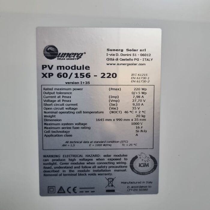 Sunerg Solar XP 60/156-220 220Wp Version I+ 35