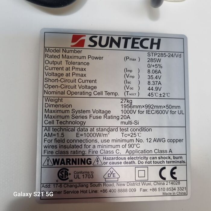 Das Suntech STP285-24/Vd ist ein polykristallines Solarmodul mit 285Wp