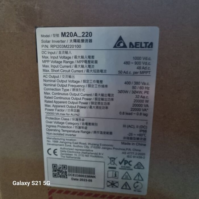 Der Delta M20 A Flex ist ein Solarwechselrichter mit 20 kW.